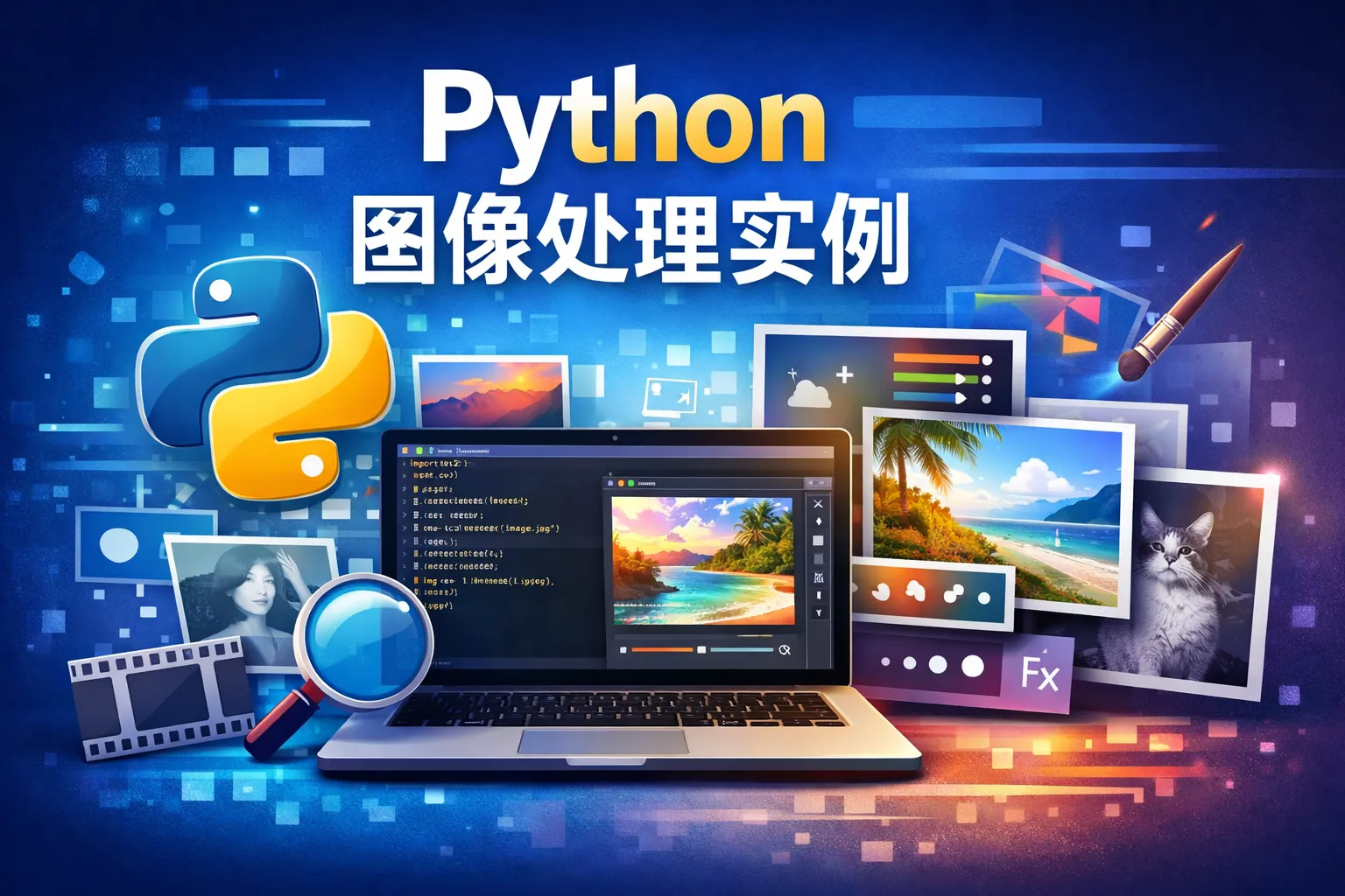 通过Pillow库可以非常方便地实现图像的基本操作。比如,打开图像后,可以使用crop()方法进行裁剪,resize()方法进行缩放,rotate()方法进行旋转。Python代码示例: