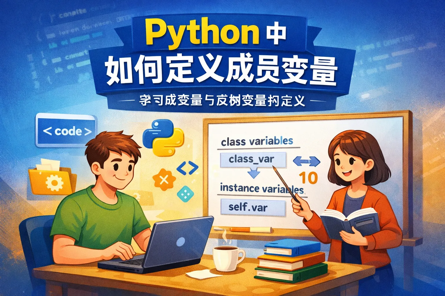 在Python中,成员变量主要分为实例变量和类变量。实例变量属于某个对象的属性,每个对象有独立的实例变量。类变量属于类本身,所有实例共享同一个类变量。实例变量通常在类的构造函数(__init__方法)中定义,使用self关键字;类变量直接在类体中定义。