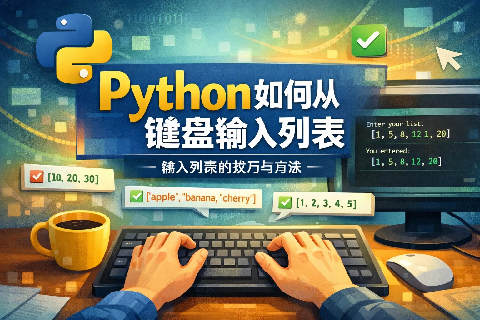 可以遍历输入的字符串列表,用 int() 或 float() 等函数尝试转换元素类型,并用 try-except 捕获可能的异常。如果转换失败,提示用户重新输入或跳过错误数据,从而确保列表中元素满足预期的类型。