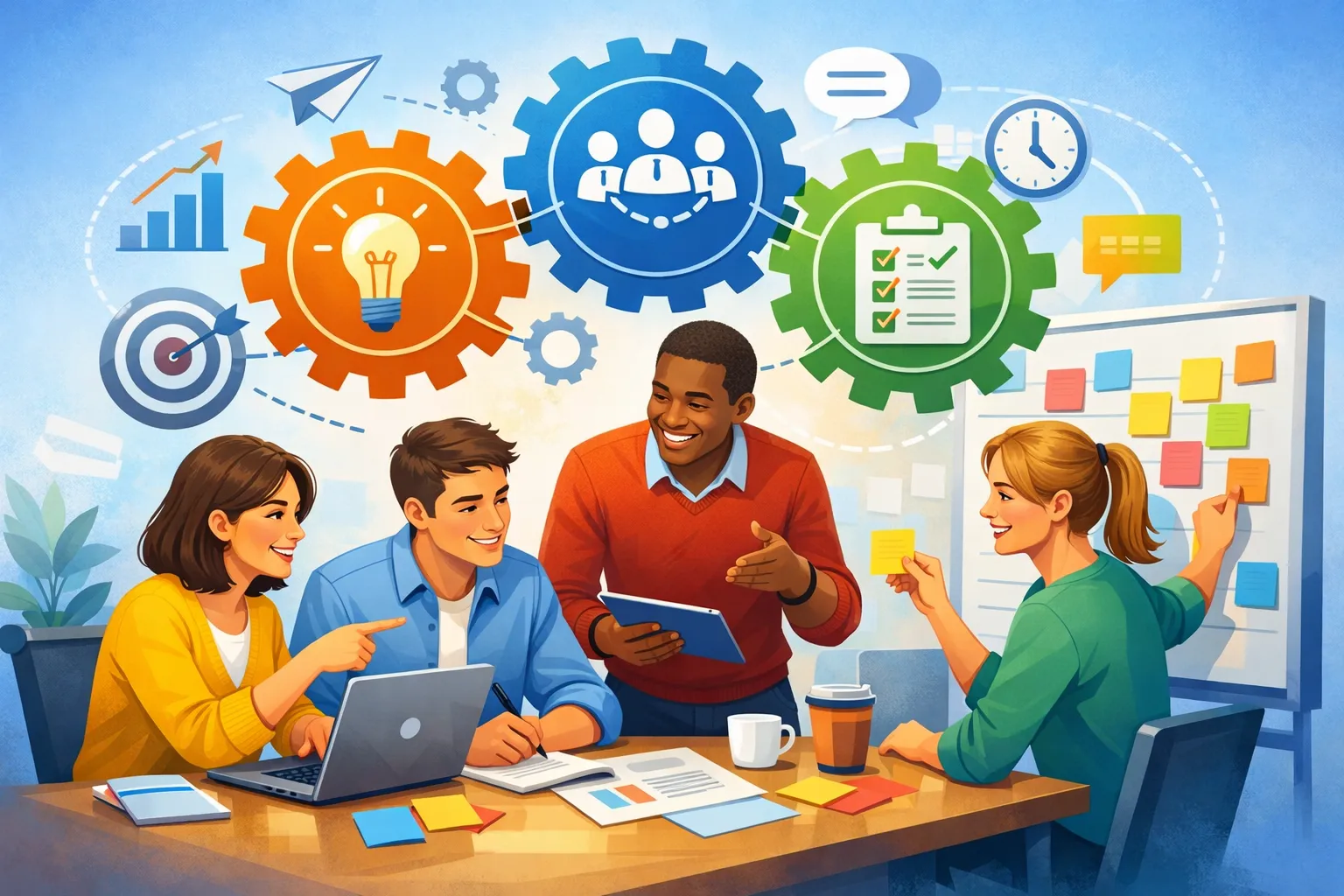 团队成员可以通过面对面会议、即时通讯工具和电子邮件等多种渠道进行沟通,确保信息能够及时传达到每个人。此外,鼓励成员积极表达意见和反馈,营造开放透明的沟通氛围,有助于减少误解和提升协作效率。