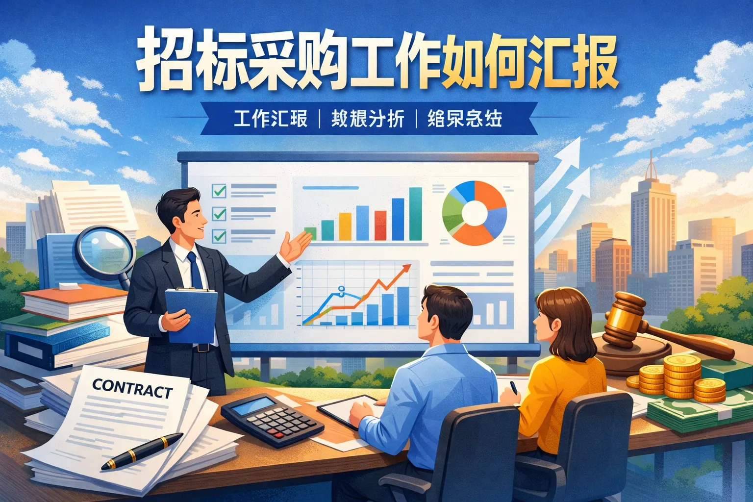 在进行招标采购工作汇报时,怎样才能全面且清晰地总结当前的进展?