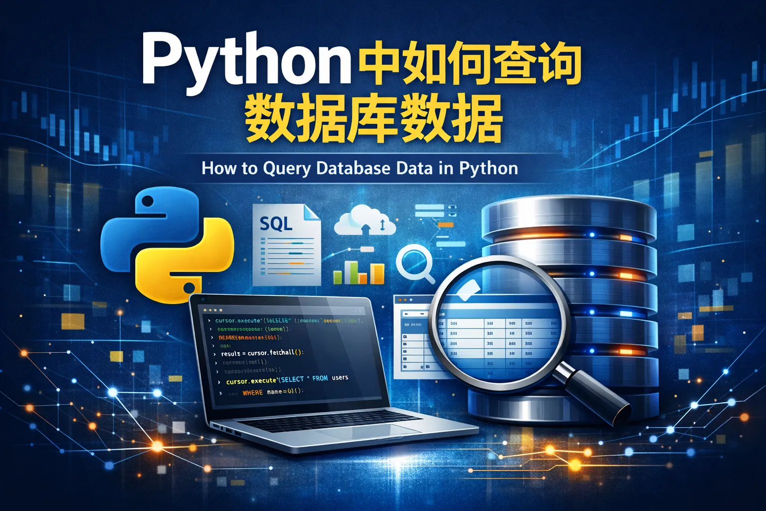 首先,需通过相应数据库的连接库创建数据库连接。接着,利用连接对象创建一个游标(cursor)进行操作。然后,通过游标的execute()方法执行SQL查询语句。最后,使用fetchone()或fetchall()方法获取查询结果。记得操作完成后关闭游标和连接。
