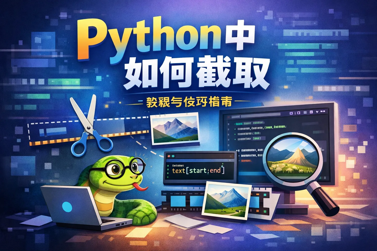 Python中可以通过切片操作实现字符串截取。语法格式是:string[start:end:step],其中start是起始索引,end是结束索引(不包含该位置字符),step是步长。例如,string[2:5]会返回字符串从索引2到4的字符。
