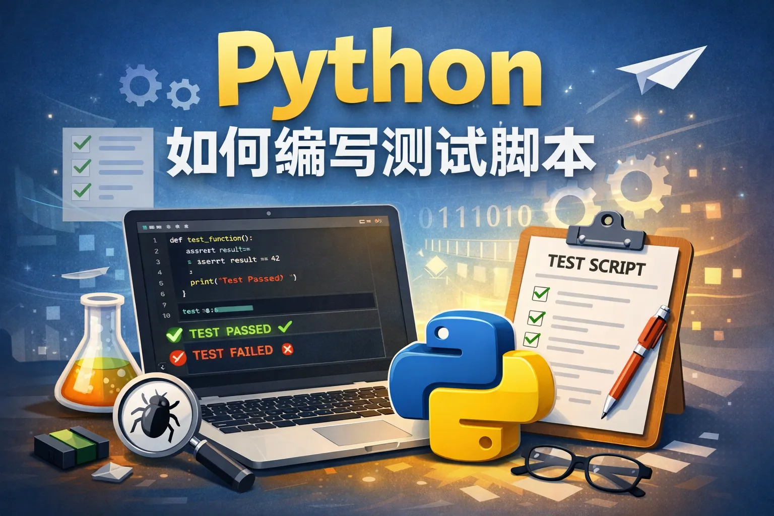 编写Python测试脚本通常从选择测试框架开始,常用的有unittest、pytest等。安装Python环境后,可以使用pip安装对应的测试库。基本步骤包括编写测试函数或类,定义测试用例,运行测试,并查看结果。明确测试目标和设计好测试用例是关键。