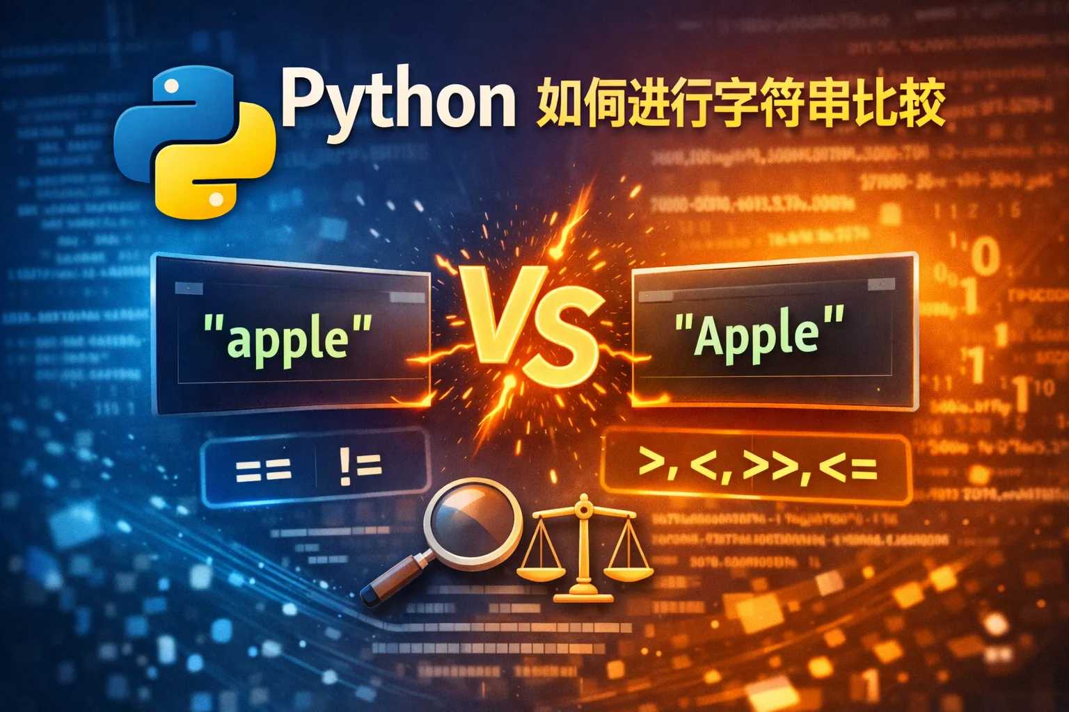 Python中比较字符串可以使用比较操作符如 ==、!= 来判断是否相等或不等,使用 <、>、<=、>= 来判断字典序大小;也可以使用内置函数如 str.compare() 或通过引用字符串的内置方法如 .startswith()、.endswith() 来做部分比较。== 操作符比较字符串的内容是否完全相同,而比较操作符根据字符串的ASCII码值进行字典序比较。