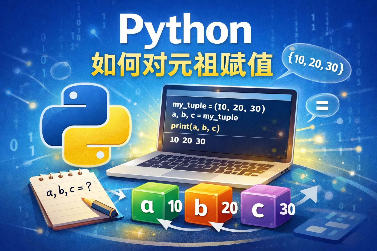 在Python中,可以通过解包方式实现对元组中多个变量的赋值。例如:a, b, c = (1, 2, 3) 将分别把1赋值给a,2赋值给b,3赋值给c。这样的方法简洁且直观,特别适合处理含有多个元素的元组。