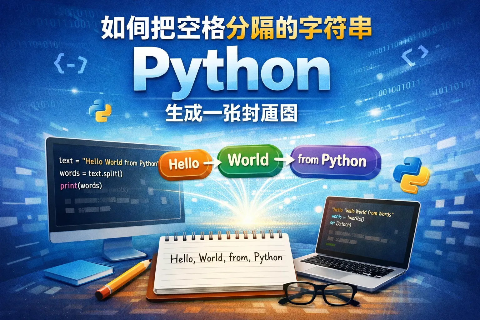 先用split()将字符串拆分为列表,然后使用字符串的join()方法结合一个新的分隔符将列表元素合并成字符串。例如,'a b c'.split()后用'-'.join(['a', 'b', 'c'])得到'a-b-c'。