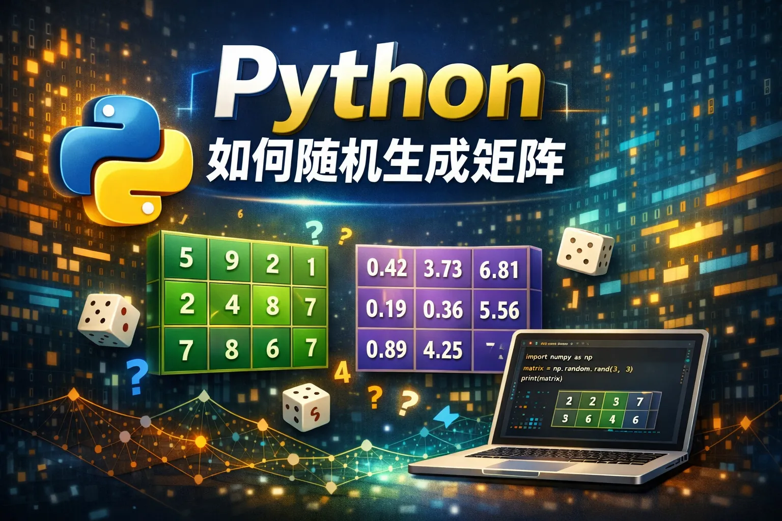 NumPy的random.randint(low, high, size=(rows, cols))可以生成指定范围内的随机整数矩阵。其中low是下界(包含),high是上界(不包含),size设置矩阵的形状。这样可以生成整型随机矩阵。