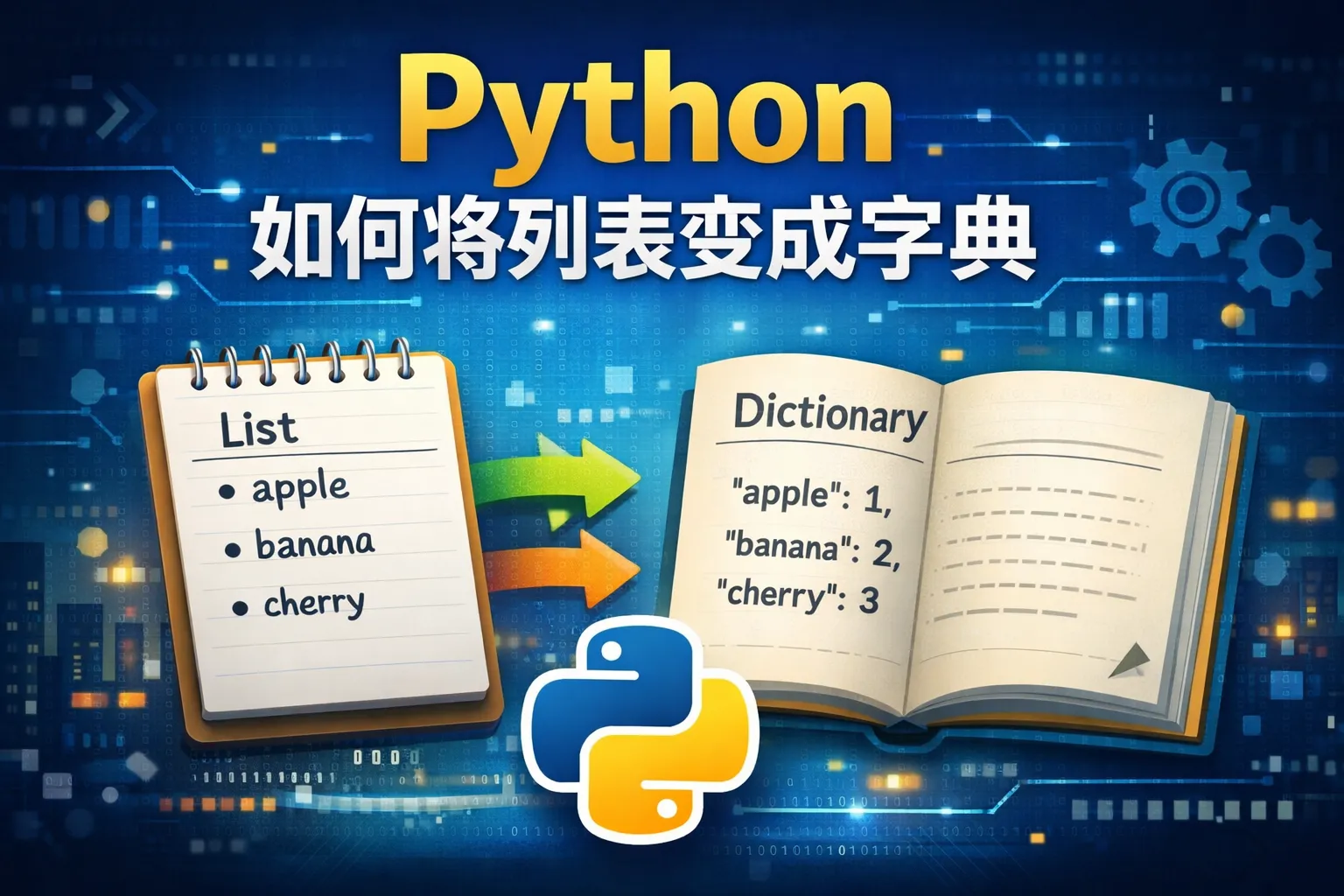 这样生成的字典是{0: 'apple', 1: 'banana', 2: 'cherry'}。