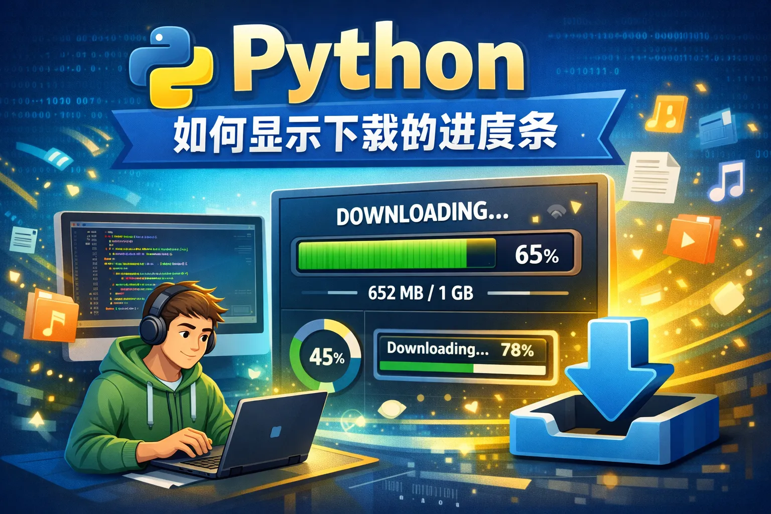 可以用urllib.request下载文件时获取文件大小,通过循环读取固定大小的数据块,并在循环中打印下载进度百分比。虽然没有图形化进度条那么美观,但通过简单的文本更新也能达到显示进度的效果。关键是要覆盖前一次的文本输出,让进度信息动态刷新。