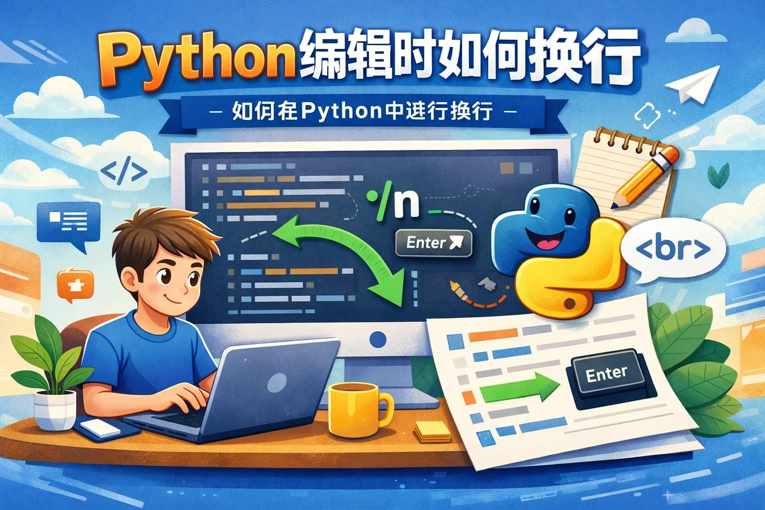 Python对换行有严格的语法要求。若直接换行可能会导致语法错误,解决方法有: