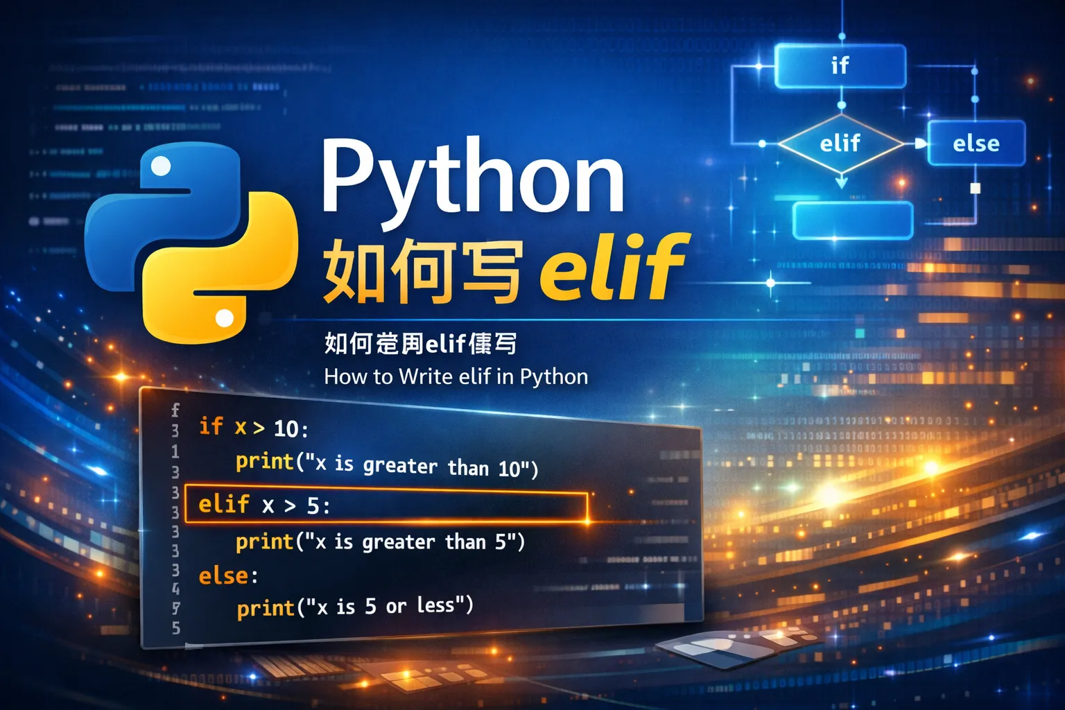 elif是Python中条件判断语句的一部分,用来在if语句的条件不满足时,检查其他条件是否成立。它的作用相当于“else if”,用来处理多个条件的分支逻辑。