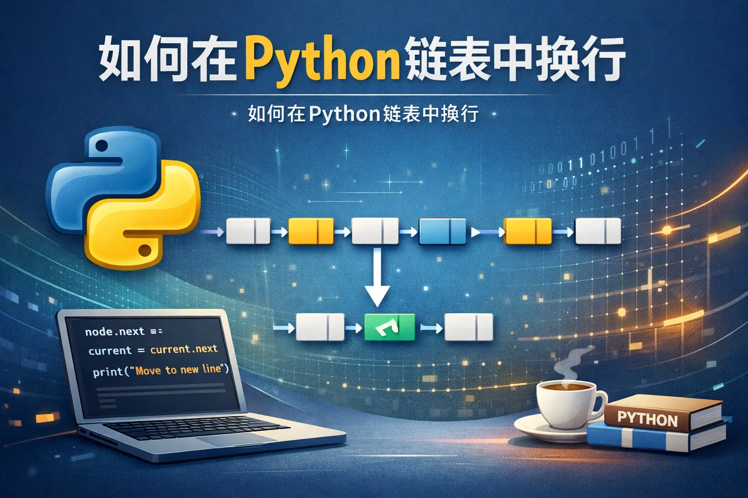 Python中的链表通常是通过自定义类或使用列表模拟的结构。在输出链表节点时,可以在打印操作中加入换行符'\n'。如果链表节点存储的内容包含字符串,直接在字符串末尾添加换行符即可实现换行效果。