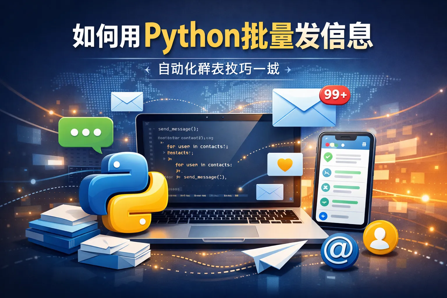 要用Python批量发送信息,需安装Python解释器,并熟悉pip包管理工具。根据发送渠道不同,可能需要安装第三方库,如用于邮件发送的smtplib、用于短信发送的Twilio库等。同时注册相应的服务平台以获取API访问权限也是必要的准备。