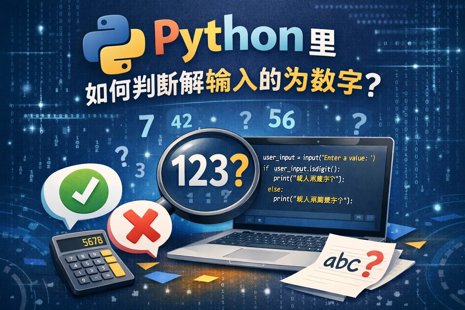可以利用字符串的 isdigit() 方法判断输入是否为数字。例如,input_str.isdigit() 返回True表示输入的字符串全为数字字符,但该方法不支持小数和负数的判断。