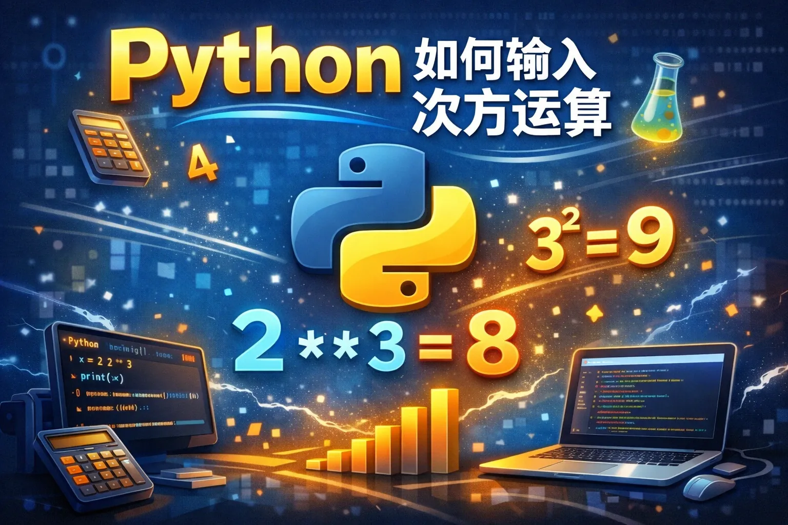 在Python中,可以使用双星号()操作符来表示幂运算。例如,计算2的3次方可以写成2 ** 3,结果为8。