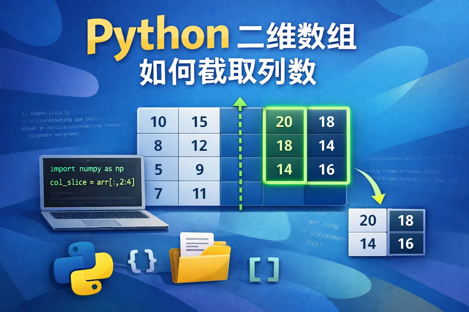 如果二维数组是以列表的形式存在,可以用列表推导通过索引获取指定列,例如:[row[列索引] for row in array]。若使用NumPy数组,可以通过切片array[:, 列范围]来快速截取所需的列。