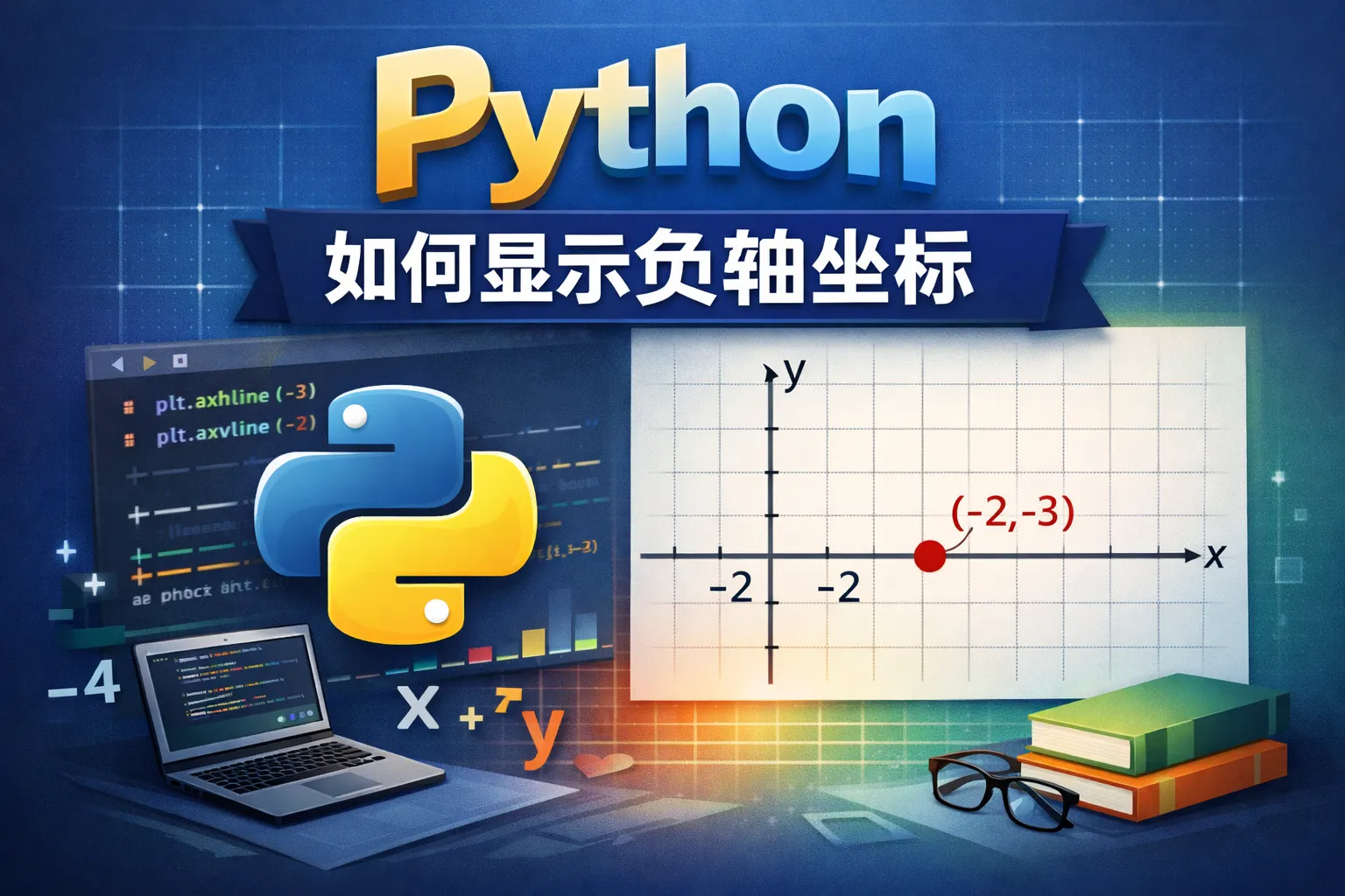 可以利用matplotlib的xticks()和yticks()函数手动指定刻度位置和显示的标签。通过传入包含负数的刻度列表,确保负轴刻度标签能够显示在图表上。