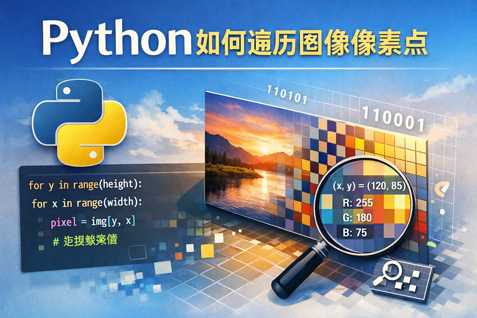 Python中常用的图像处理库包括PIL(Pillow)和OpenCV。这两个库都支持直接访问和遍历图像的像素点。PIL通过Image对象的load()方法获得像素访问对象,可以通过循环访问每个像素的RGB值;OpenCV读取图像后得到的是NumPy数组,可以利用数组索引遍历每个像素的数据。