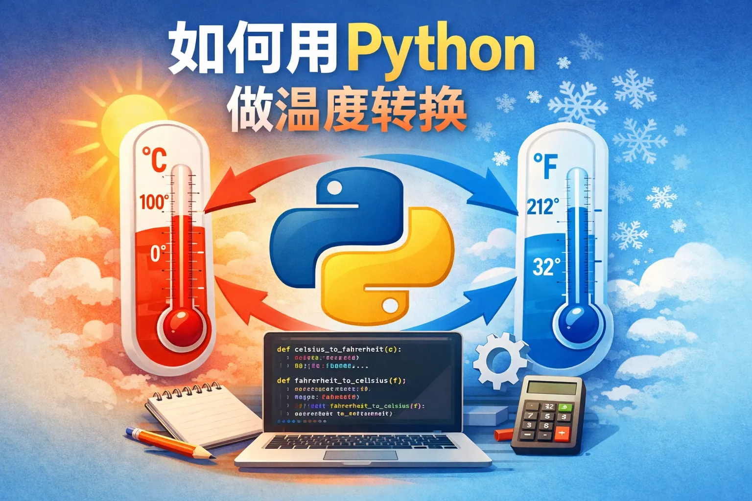 常见温度单位包括摄氏度(Celsius)、华氏度(Fahrenheit)和开尔文(Kelvin)。转换时可以使用公式:摄氏度转华氏度为 (C × 9/5) + 32,华氏度转摄氏度为 (F - 32) × 5/9,摄氏度转开尔文为 C + 273.15,开尔文转摄氏度为 K - 273.15。Python通过函数实现这些公式即可完成转换。