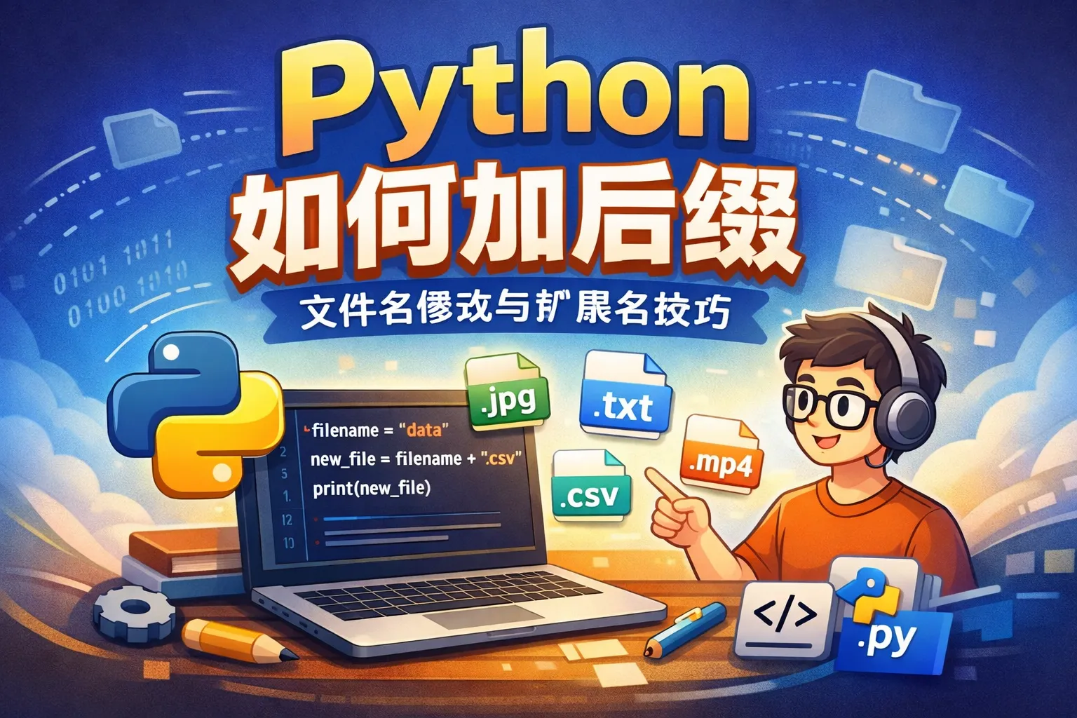 如何用Python给文件名添加后缀?