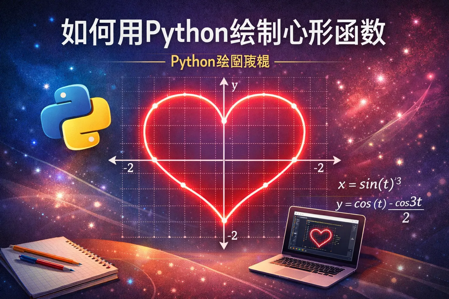 听说可以用参数方程来绘制心形图,用Python实现时需要注意哪些细节?