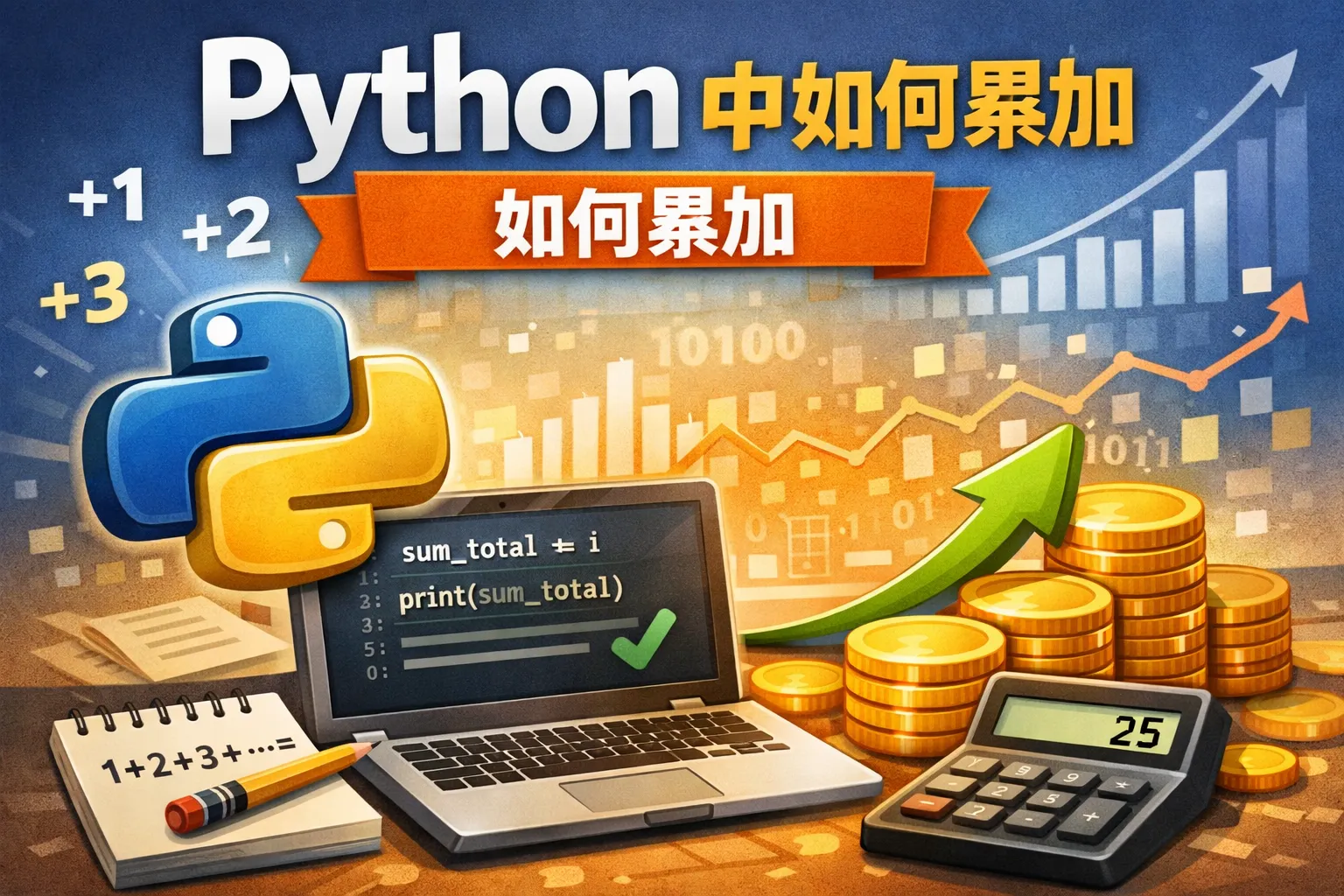 Python中可以使用循环结构配合变量来实现累加,比如使用for循环遍历数值列表,将每个数值累加到一个初始为0的变量中。此外,内置函数sum()可以直接对可迭代对象内的数字求和,写法更简洁。也可以通过列表推导式或生成器表达式结合sum()函数进行累加。