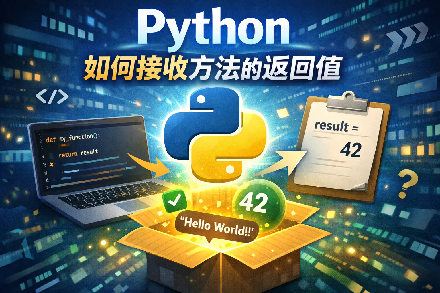 Python函数通过return语句返回结果,调用函数时可以将其赋值给一个变量,用以获取函数的返回值。例如,result = my_function(),此时result就是函数返回的数据。