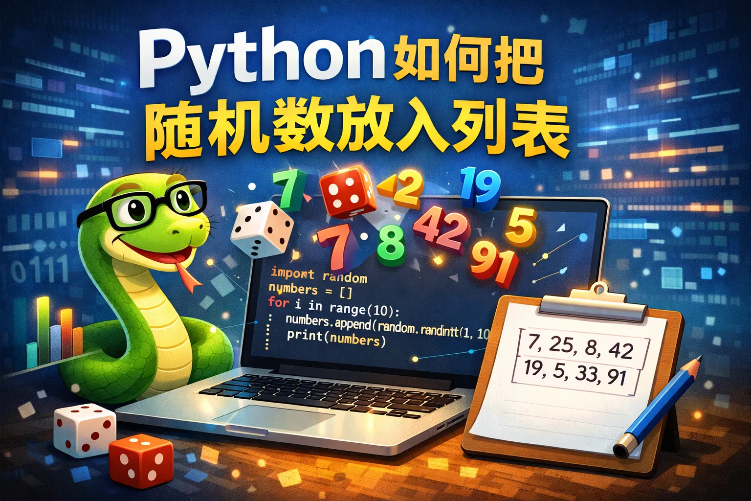 可以使用Python的random模块中的函数,如random.randint(a, b)生成指定范围[a, b]内的随机整数,然后用一个循环将生成的随机数添加到列表中。例如,使用for循环多次调用random.randint(),通过append方法将数值加入列表。