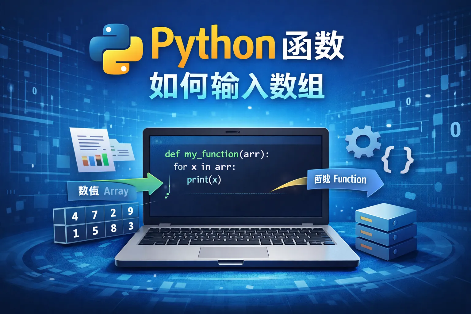 在Python函数中,可以通过定义参数为列表或元组直接接收数组类型的参数。例如,定义函数形参为一个列表,调用时传入一个列表表示数组。另外,也可以使用*args参数接收不定数量的位置参数,函数内部会将这些参数组合成元组。这样既可以灵活输入多个数值,又能方便地进行数组相关操作。