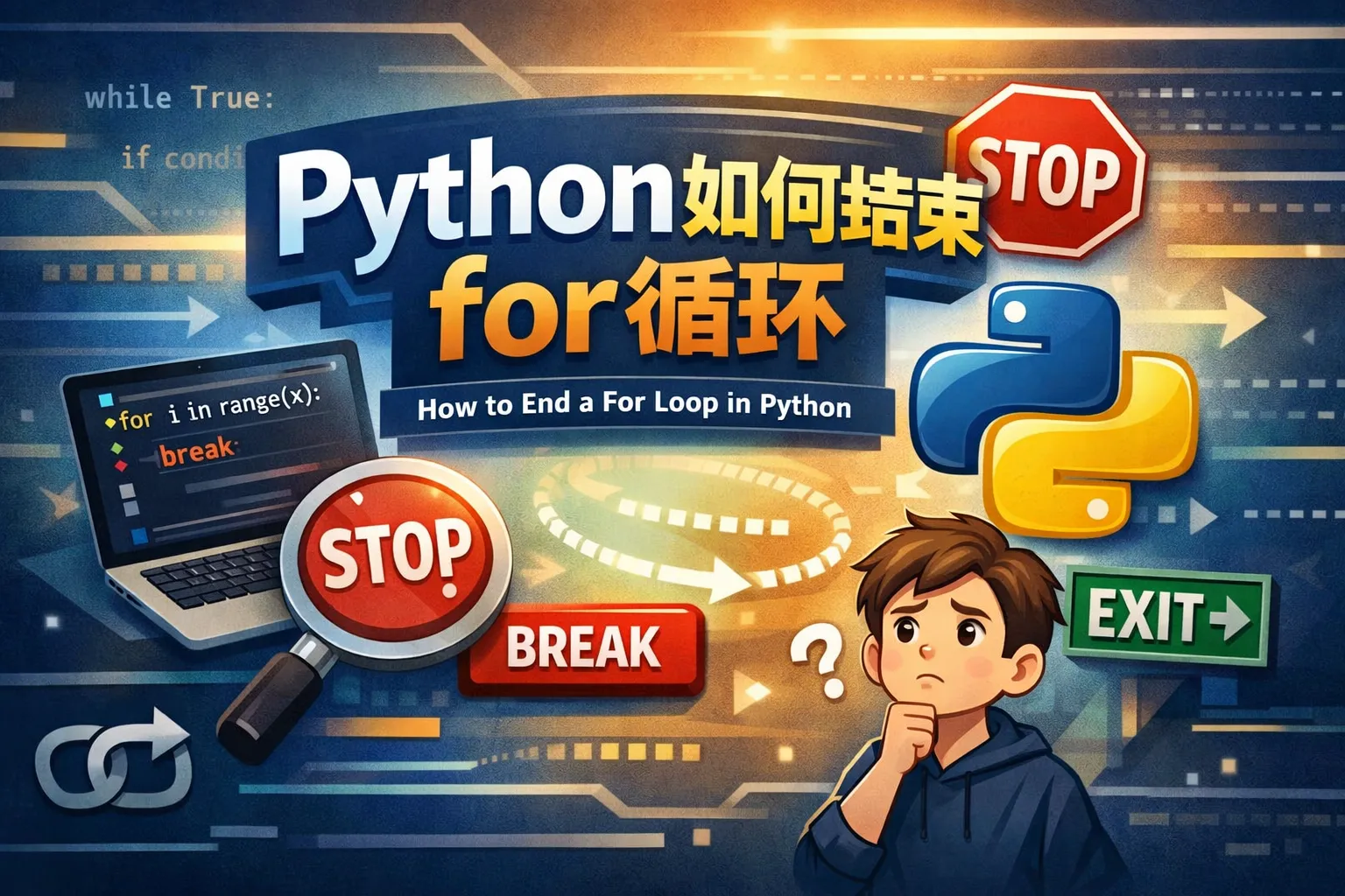 在Python编程时,如果我想在满足某个条件时立即停止for循环,该如何实现?