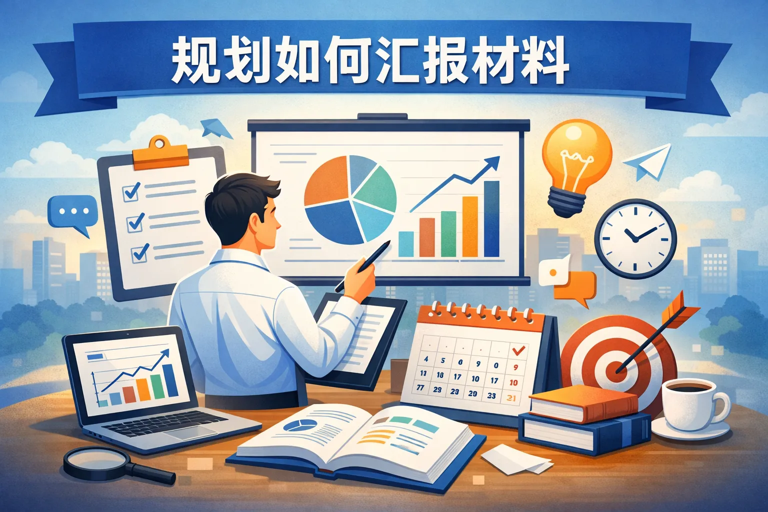 汇报材料应包括背景介绍、目标和任务说明、工作进展或成果展示、遇到的问题及解决方案、后续计划和建议。此外,数据和事实依据能够增强说服力,图表或视觉元素有助于清晰表达。