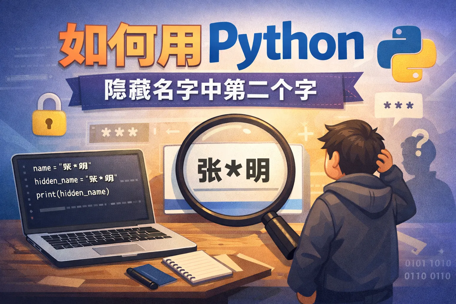 如何用python隐藏名字中第二个字