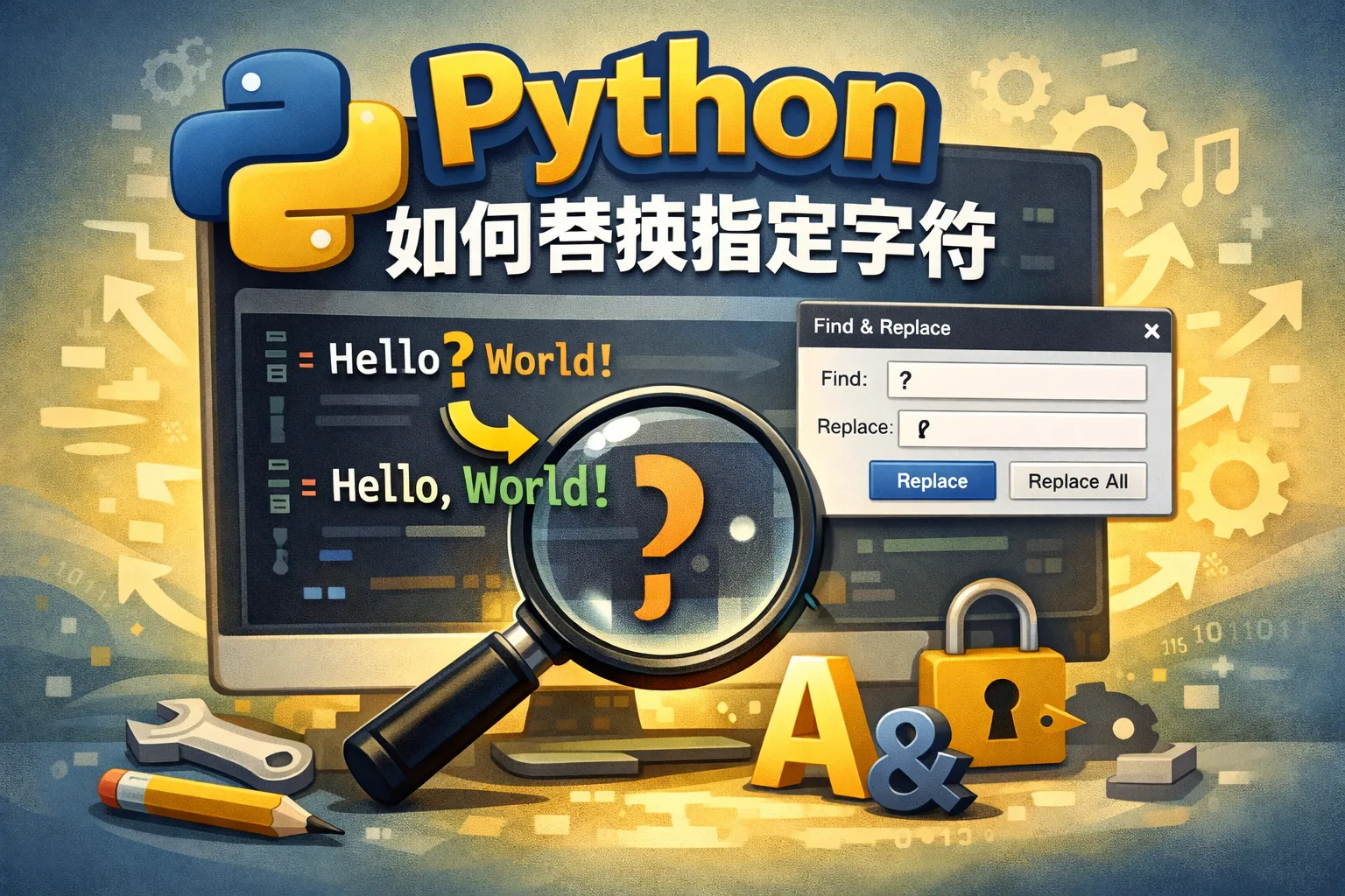 Python提供了字符串的replace()方法,可以用来替换指定的字符或子串。语法是str.replace(old, new),其中old是要替换的字符,new是替换成的新字符。例如:"hello".replace("e", "a")会返回"hallo"。