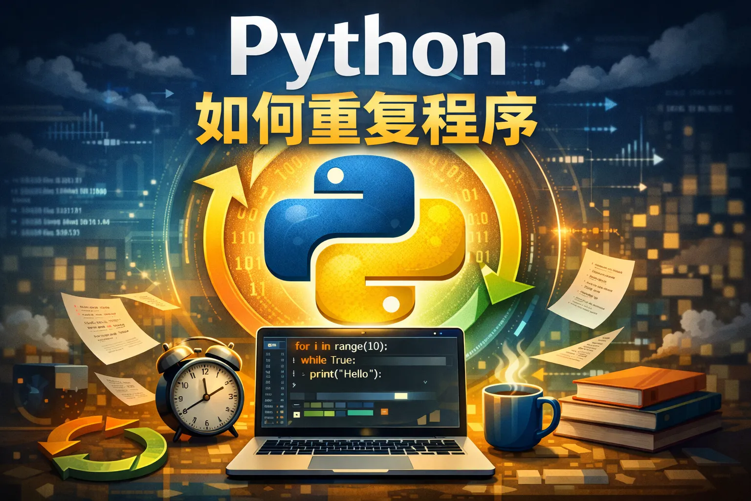 在Python中,可以使用for循环或while循环来实现代码的重复执行。for循环适用于已知循环次数的情况,而while循环更灵活,适合根据条件判断连续执行。举例来说,使用for循环可以写成: