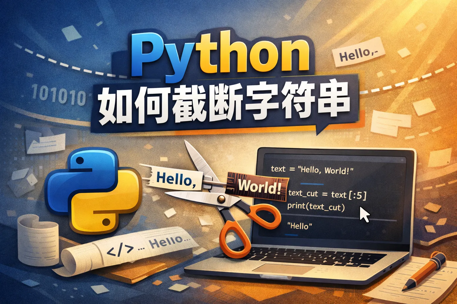 可以利用切片操作符(切片语法为 string[start:end])来截取字符串。start表示起始索引,end表示结束索引(不包含该位置字符)。例如,string = 'hello',string[1:4] 截取的结果是 'ell'。
