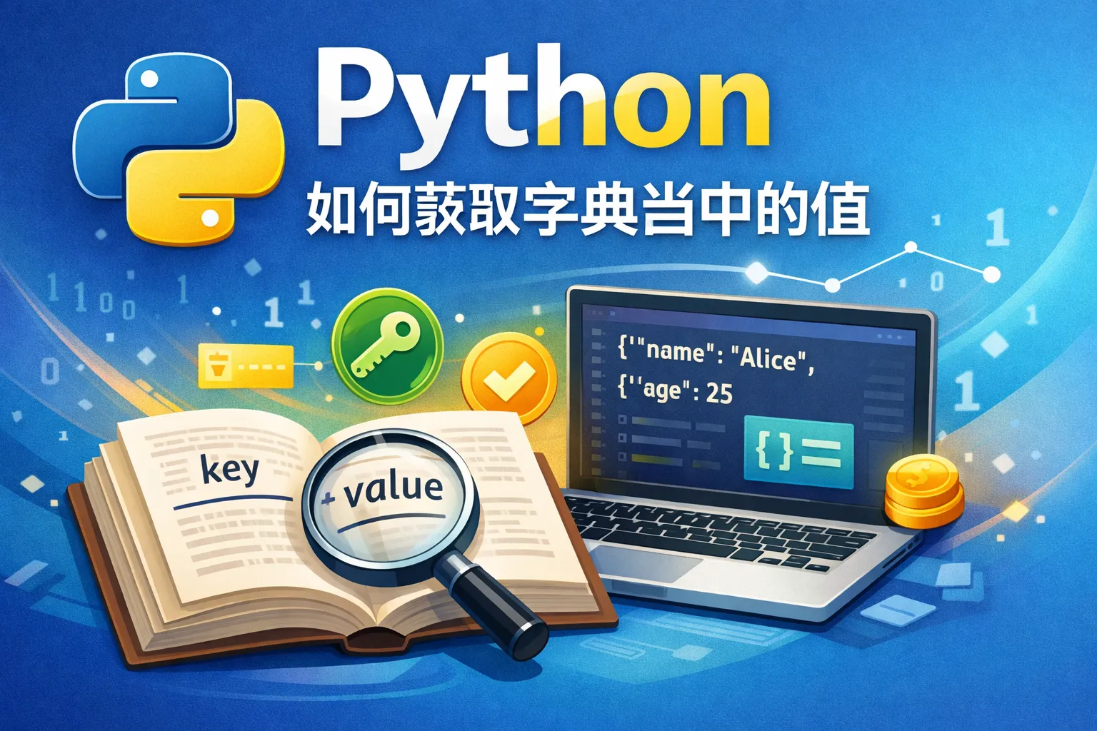 这会返回与键'name'关联的值'Alice'。如果键不存在,使用这种方法会抛出KeyError。