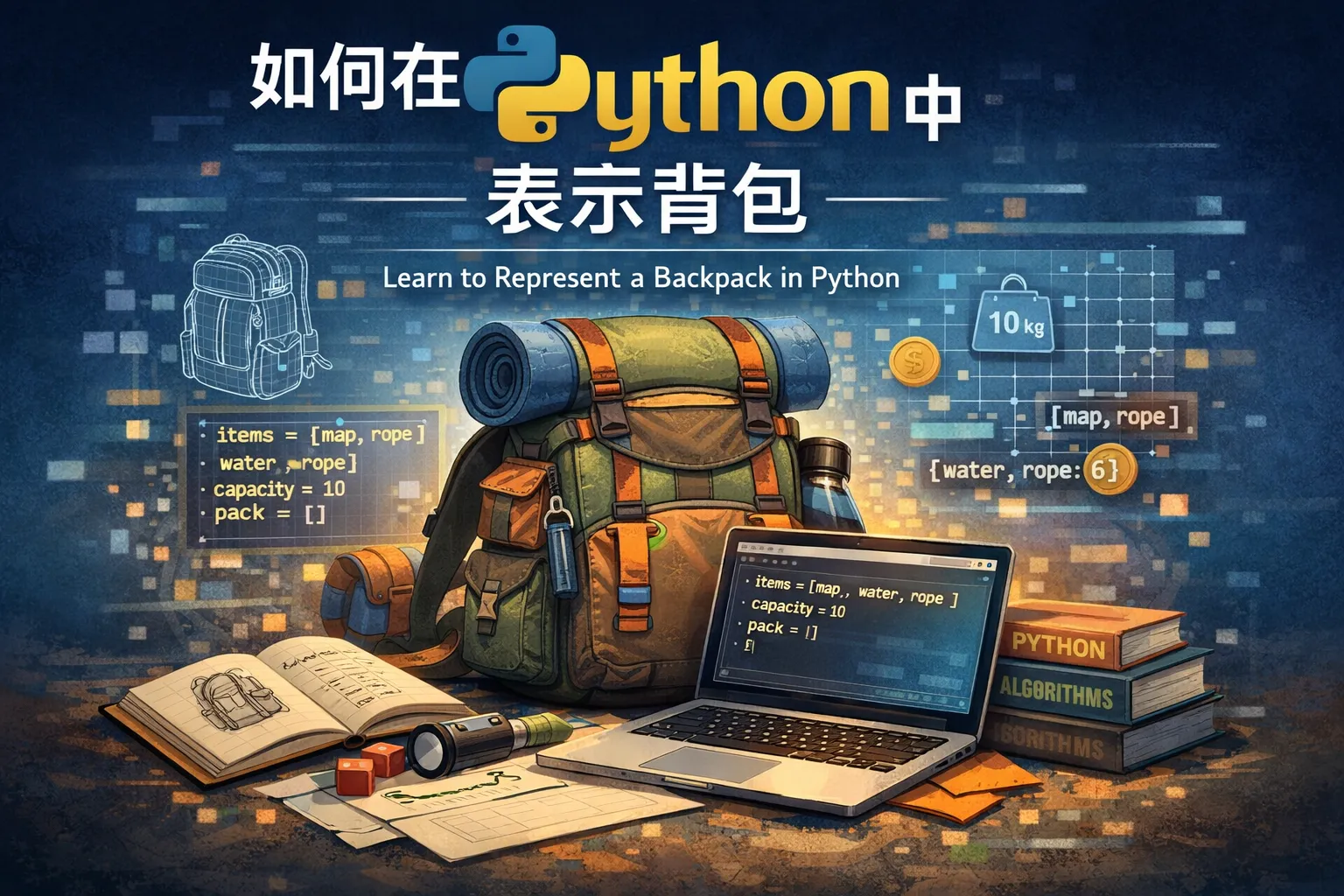 在Python中,字典(dict)是表示背包的常用数据结构,因为它可以将物品作为键,数量作为值,方便快速查找和更新。除此之外,也可以使用列表(list)储存物品对象,或使用collections模块中的Counter来统计物品数量。