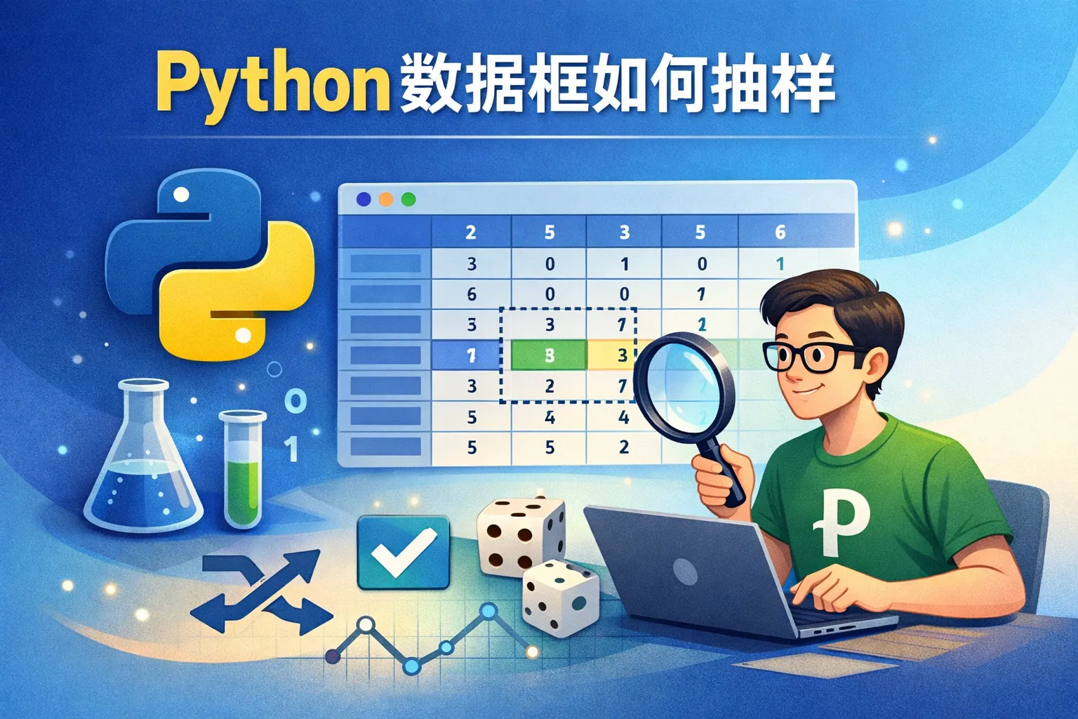 在Python中,使用pandas库的DataFrame对象的sample()方法是进行抽样的常用方法。通过sample()可以指定抽样的样本数量(n)或比例(frac),还支持是否替换抽样(replace)和随机种子(random_state)以保证结果可复现。