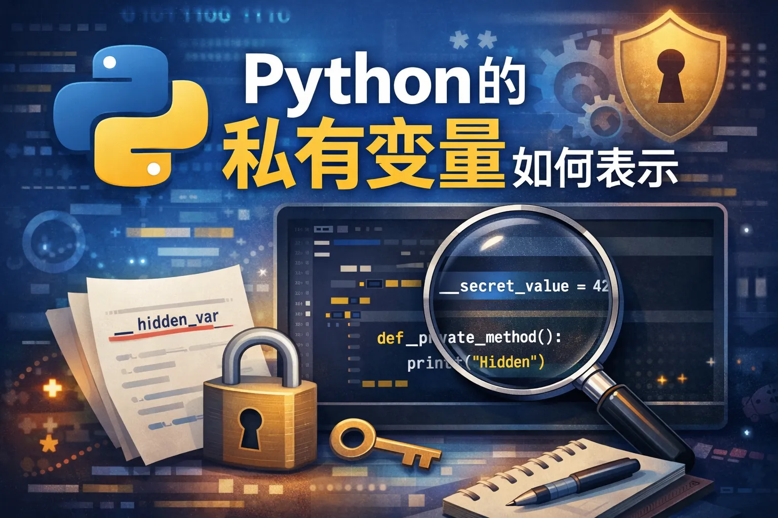 在Python中,私有变量通常通过在变量名前添加双下划线(例如__var)来表示。这种命名方式会触发名称重整机制,使变量在类外部更难访问,从而达到封装的效果。