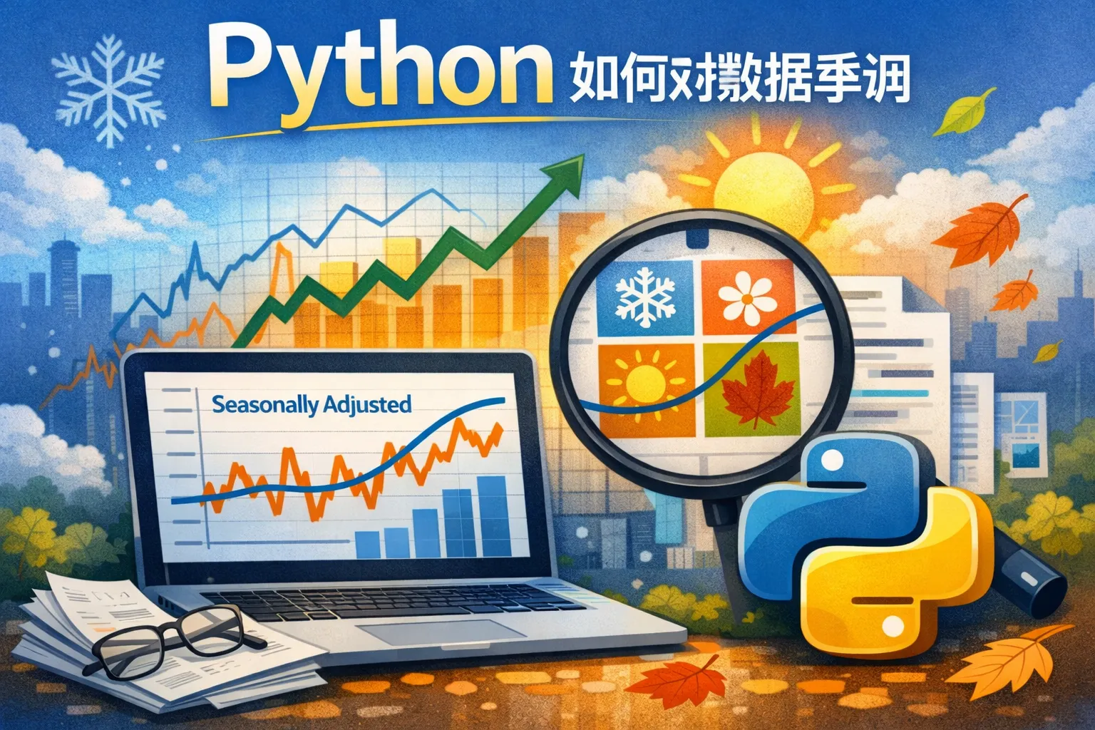 在Python中,可以使用statsmodels库中的季节分解函数(seasonal_decompose)来实现简单的季节调整。对于更复杂的季节调整,可以使用R语言的X-13-ARIMA-SEATS算法的Python接口,比如pandas的x13模块或第三方库,如statsmodels.tsa.x13。需要注意的是,x13接口需要安装美国人口普查局的X-13ARIMA-SEATS程序。