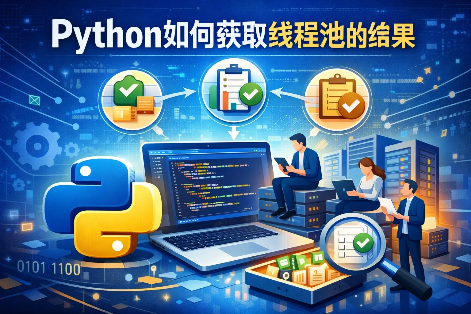 提交到线程池的每个任务都会返回一个Future实例。可以调用is_done()方法查看任务是否完成。任务完成后,调用result()方法即可获得执行结果。如果任务尚未完成,调用result()会阻塞直到结果被计算完毕。