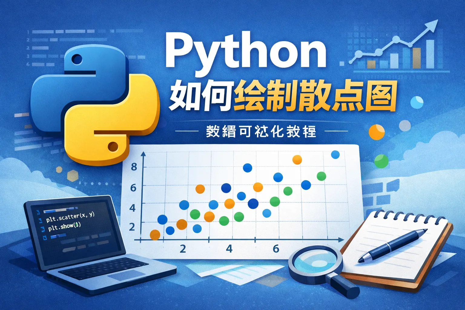 可以利用Python的Matplotlib库来绘制散点图。步骤包括:导入matplotlib.pyplot模块,准备数据(如x和y轴的数据点),然后调用plt.scatter(x, y)函数绘制散点图。最后使用plt.show()显示图表。示例代码: