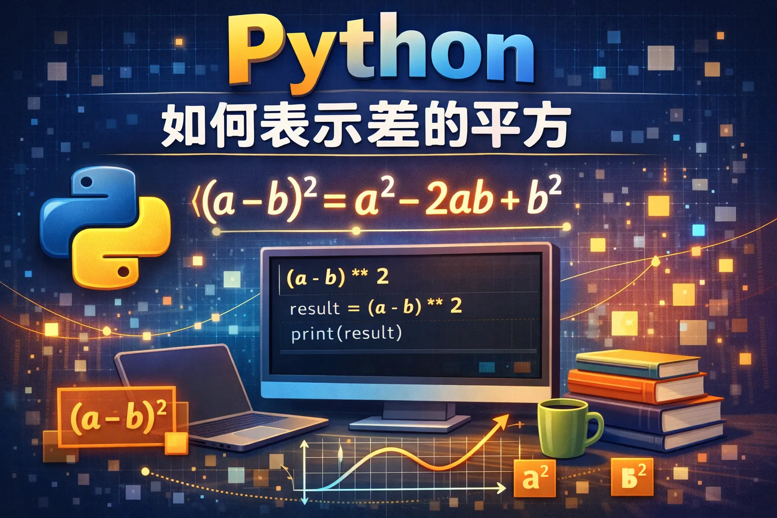 在Python中,可以直接用减法运算符减去两个数,然后使用幂运算符 进行平方计算。例如,(a - b) 2 就表示a与b差的平方。