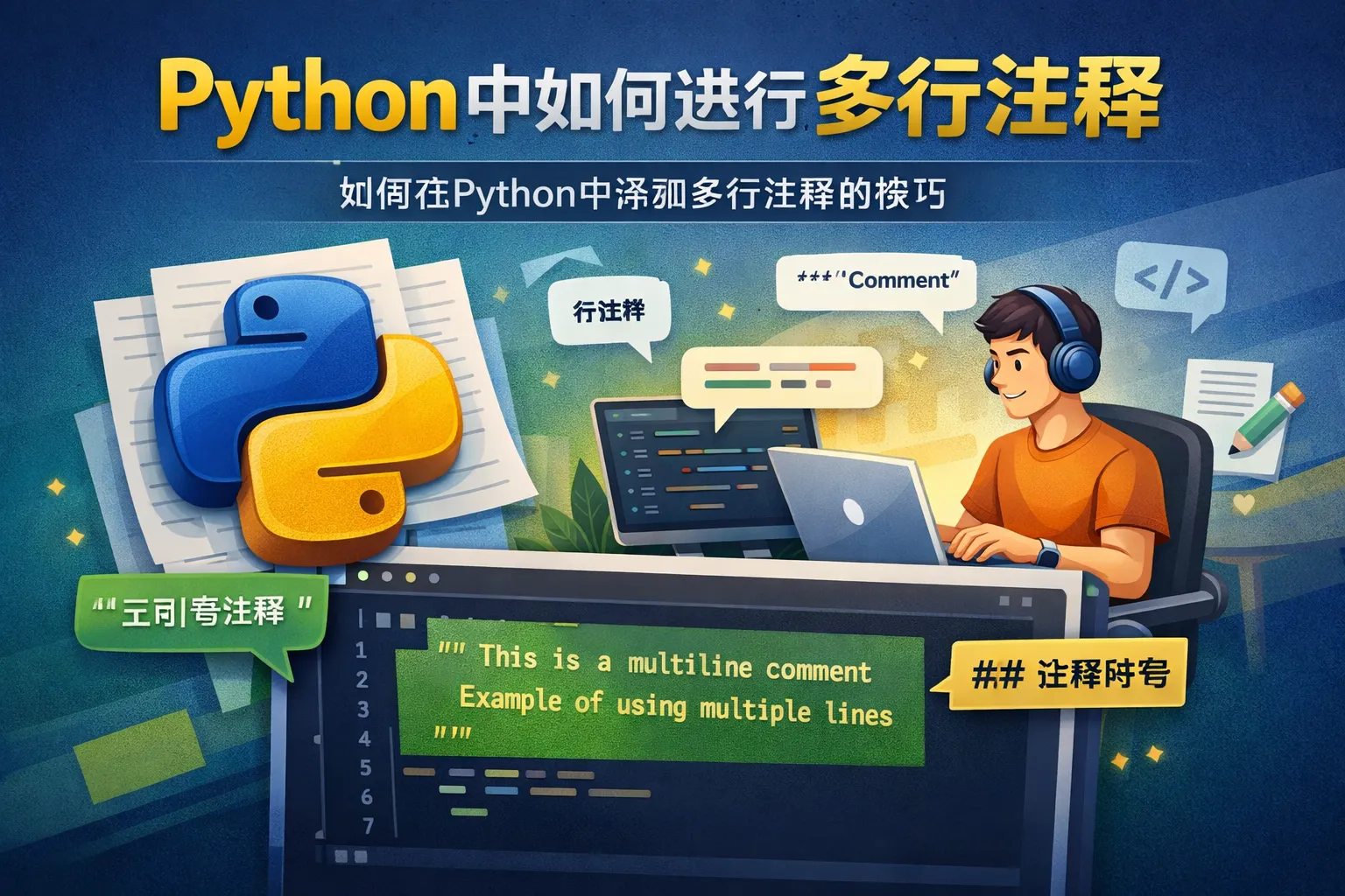 Python并没有专门的多行注释符号,但可以通过三引号(''' 或 """)来实现多行注释的效果,这些三引号包围的内容不会被Python执行,常用来写多行字符串或文档注释。另外,连续多行写多个单行注释(#)也能实现类似功能。