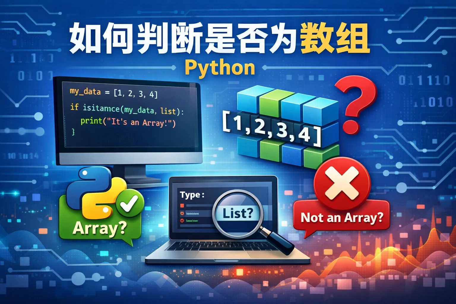 Python中没有专门的数组类型,通常使用列表(list)或者NumPy数组(numpy.ndarray)来处理数组。你可以使用内置的isinstance()函数来检查变量是否为列表或NumPy数组,例如:isinstance(variable, list)或者isinstance(variable, numpy.ndarray)。如果是为了性能和多维数组操作,建议使用NumPy库,它提供了强大数组支持。