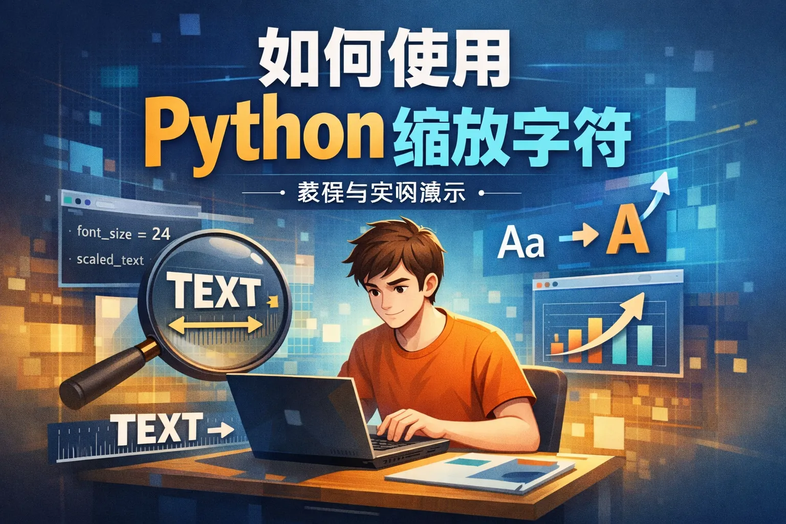 Python通过图形界面库如Tkinter、Pillow(PIL)或Matplotlib都可以调整字符大小。例如,使用Pillow库绘制文本时,可以通过设置字体大小参数来缩放字符。此外,Tkinter的Label组件可以通过配置字体属性实现字符缩放。