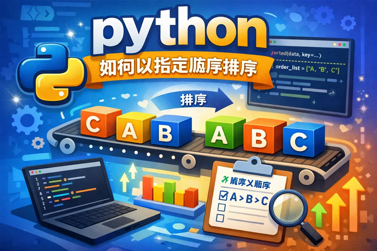 可以先创建一个字典,将每个元素映射到对应的排序序号,然后在排序时使用这个序号作为键。例如,order = {'高': 0, '中': 1, '低': 2},接着用list.sort(key=lambda x: order[x])即可按照指定顺序排序。
