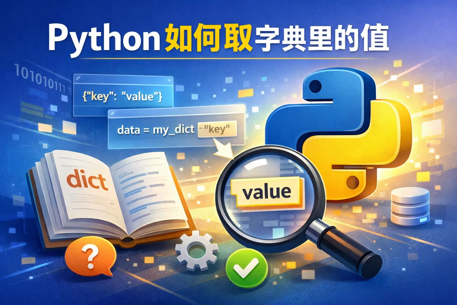 Python中的字典是以键值对的形式存储数据的,可以直接通过键来访问对应的值。例如,假设字典为my_dict,要取值可以写my_dict['key']。如果键不存在,访问时会报错。