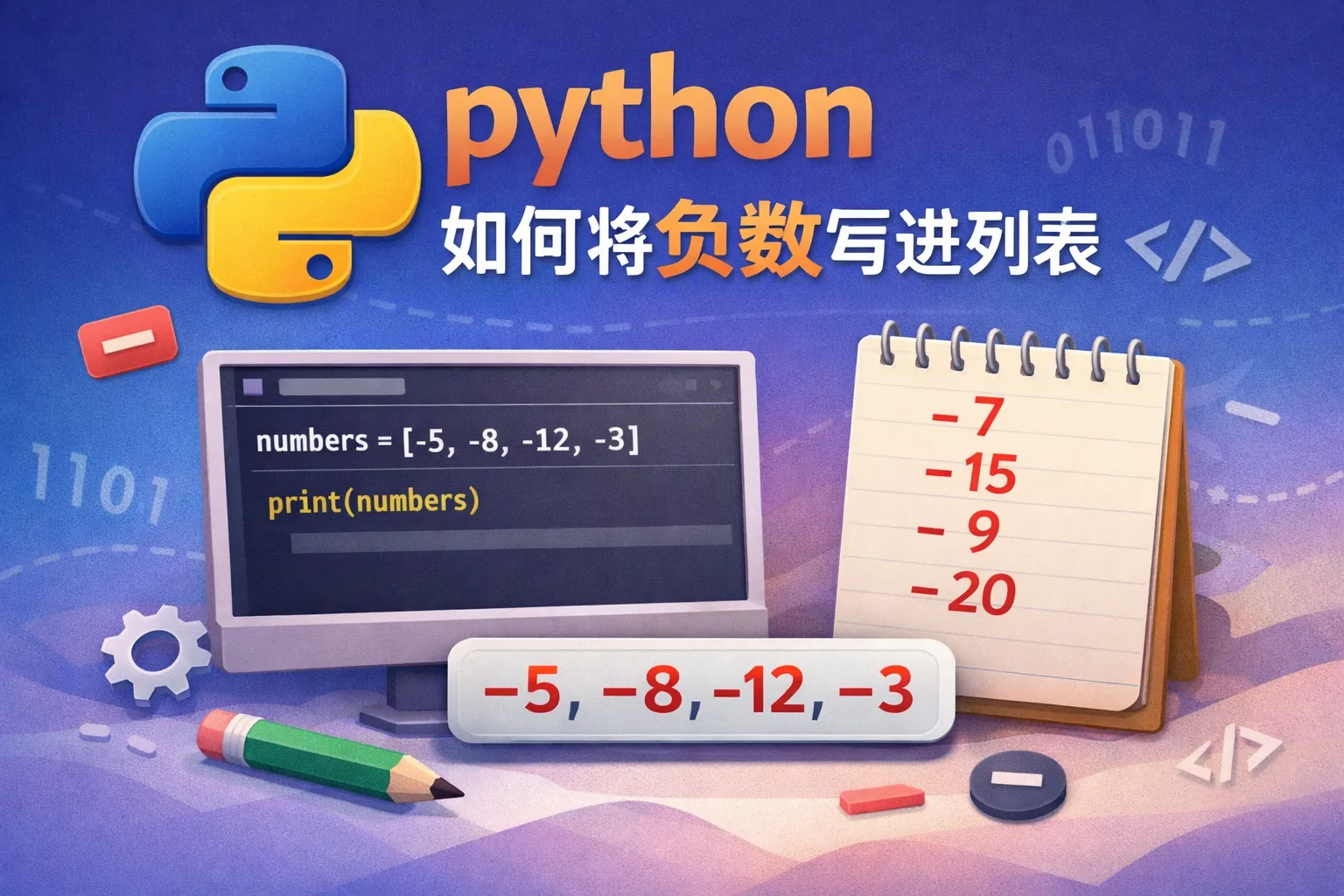 python如何将负数写进列表